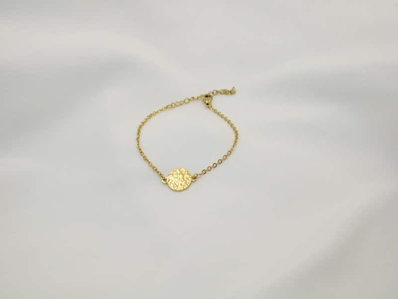 Armbåndet er i 14 karat forgyldt rustfrit stål med banket forgyldt vedhæng